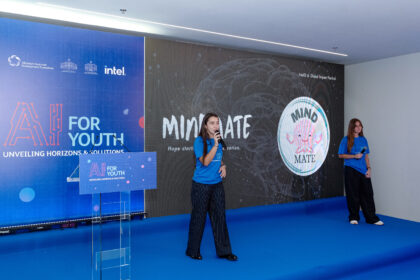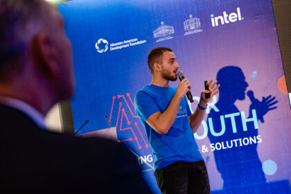14/10/2025 Education & Leadership AI4Youth Students Present their Innovative Projects The Unveiling New Horizons event showcased the achievements of students participating in the AI for Youth project, who presented innovative applications of artificial intelligence that address real community challenges. Held in the presence of the AADF Board of Trustees and the Minister of Education, the event showcased the creativity, analytical thinking, and technical skills of Albanian youth in using AI for social impact. Through Intel’s AI curriculum, high school students developed a diverse range of solutions, from tools for construction safety and health management to assistive technologies for the visually impaired. Each project reflected the students’ commitment to applying technology responsibly and effectively. Since 2022, AI for Youth has equipped over 1,800 students and 75 ICT teachers with the knowledge and tools to thrive in the digital era. To strengthen this initiative, AADF has established 23 AI laboratories across schools in Albania, providing practical learning environments that inspire innovation and problem-solving. Gallery