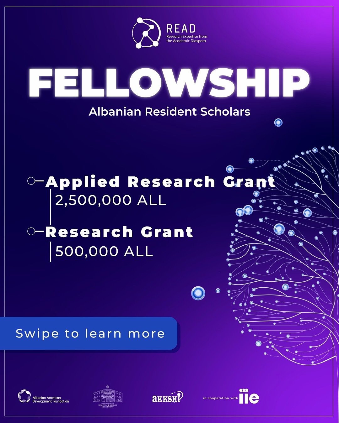 READ Fellowship Call for Albanian Scholars Albanian academics can apply for two new grant opportunities designed to strengthen research and academic collaboration with diaspora scholars: Applied Research Grant — up to 2,500,000 ALL Research Grant — up to 500,000 ALL Projects should include, among others, the following core components: Collaborative Research Curricula Development Co-Teaching These grants aim to support impactful research, modernize teaching programs, and foster long-term academic partnerships. Deadline for applications: January 30th, 2026 Apply Now!