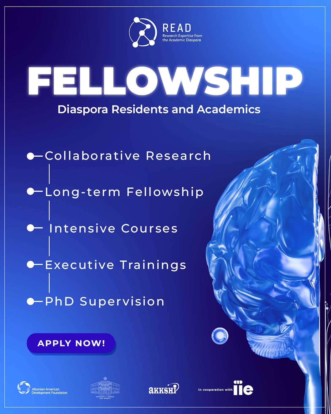 READ Fellowship Call for Diaspora Scholars The AADF, through the Research Expertise from the Academic Diaspora Program, announces the 5th Fellowship Call for Diaspora Scholars. Albanian academics living abroad can now collaborate with Higher Education Institutions in Albania through: Collaborative Research Long-term Fellowship Intensive Courses Executive Trainings PhD Supervision This fellowship is a chance to reconnect with Albania’s academic ecosystem, share your expertise, mentor the next generation of scholars, and support institutional capacity building in Albanian universities. Apply Now!