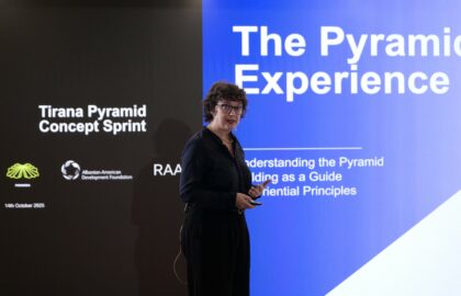 14/10/2025 Culture & Eco Tourism Presentation of the Concept for the Pyramid’s Interactive Exhibition Today, in the presence of the AADF Board of Trustees, the Prime Minister of Albania, the Minister of Culture, and the Mayor of Tirana, the concept for the Pyramid’s Interactive Exhibition was officially presented. Developed by the AADF in collaboration with Qendra Piramida and designed by Ralph Appelbaum Associates, the project aims to integrate the Pyramid’s iconic architecture with a contemporary, immersive visitor experience. Framed as an open dialogue, this presentation marks the beginning of a shared process to ensure that the new intervention honors the building’s layered history while shaping a dynamic and relevant space for future generations. Gallery