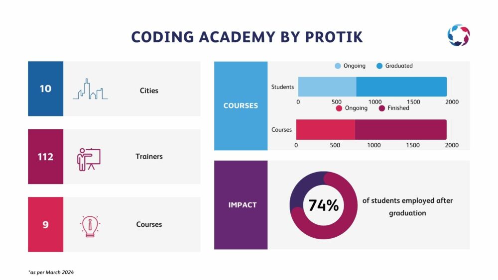 The Coding Academy by Protik is a collaboration between the Protik ICT Resource Center—an offshoot of the AADF—and international expertise in software development training. The Albanian government has generously provided the facilities where the academy is located, right in the center of Tirana.